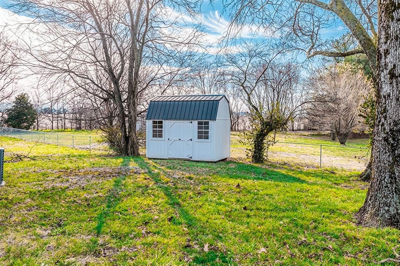 Situated in the scenic rolling countryside just 2 miles outside of Franklin, Kentucky, this charming and exceptionally clean country home offers peaceful living with convenient access to town. Situated on approximately 0.37± acres with mature trees, the property blends rural charm with everyday practicality perfect for those seeking space, simplicity, and freedom from neighborhood restrictions as you see in town. Per PVA records the home features 3 bedrooms and 1 bathrooms, though its unique layout may function best as a primary bedroom, home office, and spacious upper loft area that could serve as additional sleeping space, studio, or recreation area. The interior is bright and inviting, highlighted by a dining area with farm style flooring and a wall of windows bringing in natural light and scenic views. The kitchen offers generous countertop space and includes a refrigerator, stove, and custom low-profile microwave that remain with the home. A dedicated laundry room adds convenience, while the full bathroom features a custom walk-in seated tile shower designed for both comfort and accessibility. Outside, the large covered front porch provides the perfect place to relax and enjoy the surrounding countryside. From here you can watch neighboring cows grazing near a pond just beyond the fence, often visited by ducks, turtles, and other wildlife, creating a peaceful rural backdrop. The immediate backyard is fully fenced, ideal for pets or a play area, while additional open space beyond the fence offers room for a garden. A large front parking pad provides ample parking. Major updates include a brand-new Amish-installed metal roof in 2024 along with a new shed added the same year. Enjoy the quiet beauty of farmland living while remaining close to modern conveniences. Franklin and its amenities are only minutes away, Bowling Green is approximately 20 minutes north, and Nashville is about an hour south, making this location both peaceful and practical. A clean, well-maintained home in a scenic rural setting with room to breathe and no HOA restrictions!