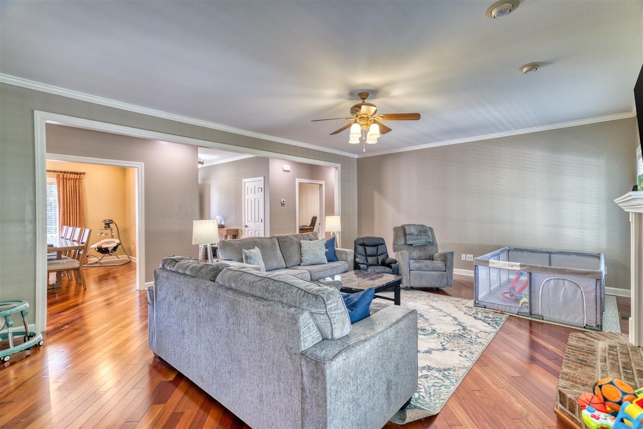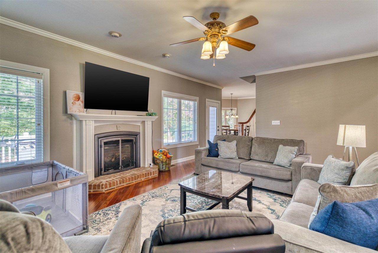 Spacious and versatile, this beautifully designed 5â??6 bedroom, 4 bath home offers comfort, functionality, and charm in a quiet cul-de-sac location within a mature neighborhood. Step inside to find an abundance of custom cabinetry throughout and a well-appointed kitchen featuring Corian countertops, all appliances remaining, and a convenient wine/coffee bar perfectly situated between the kitchen and formal dining room. Enjoy casual meals in the cozy breakfast area, while the formal dining room provides an ideal space for larger gatherings and entertaining. The home boasts a thoughtfully designed layout with a utility/laundry room that includes a large walk-in closet for additional storage, plus a separate mudroom just off the oversized garageâ??perfect for keeping everything organized. The primary suite is a true retreat, offering a private ensuite bath, two walk-in closets, and plenty of natural light. The spacious family room features a gas fireplace, creating a warm and inviting atmosphere. An extra-large flex room with a private entrance adds incredible versatilityâ??ideal as a playroom, den, or home officeâ??with built-in bookshelves and a closet, making it suitable as a sixth bedroom if needed. Upstairs, youâ??ll find a large entertainment room perfect for movie nights, gaming, or additional living space. Step outside to a gorgeous backyard complete with a deck designed for entertaining or simply relaxing while enjoying the peaceful surroundings and watching local wildlife. This home truly combines space, style, and flexibility in a desirable, quiet locationâ??donâ??t miss your opportunity to make it yours!