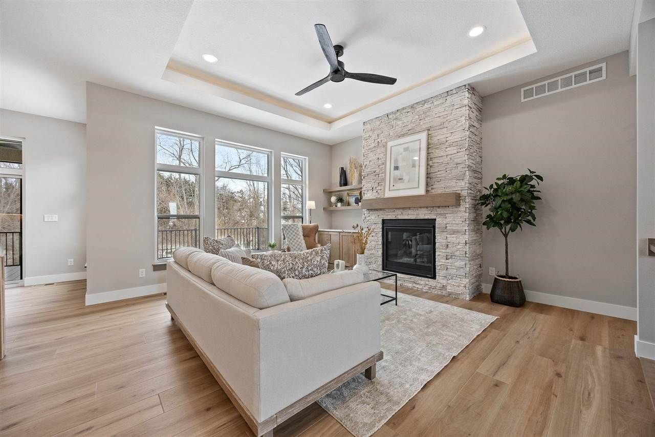 This new construction ranch walkout home is located on a wooded lot and offers 5 bedrooms, 3 bathrooms, and a three-car garage. Built with durable Hardie board siding, this home combines lasting quality with modern design. On the main floor, you'll find the primary bedroom which includes an ensuite bathroom, walk-in closet, and direct access to the laundry room. The kitchen features a hidden pantry and a nook area that walks out to the screened-in porch and additional deck space with stairs leading to the backyard. Cozy up in the living room with the gas fireplace. Two more bedrooms and a full bathroom are also located on the main floor. Downstairs, you'll find a large rec room along with two additional bedrooms and another full bathroom.