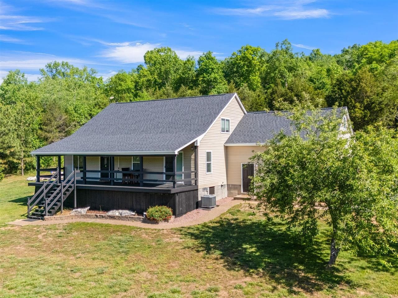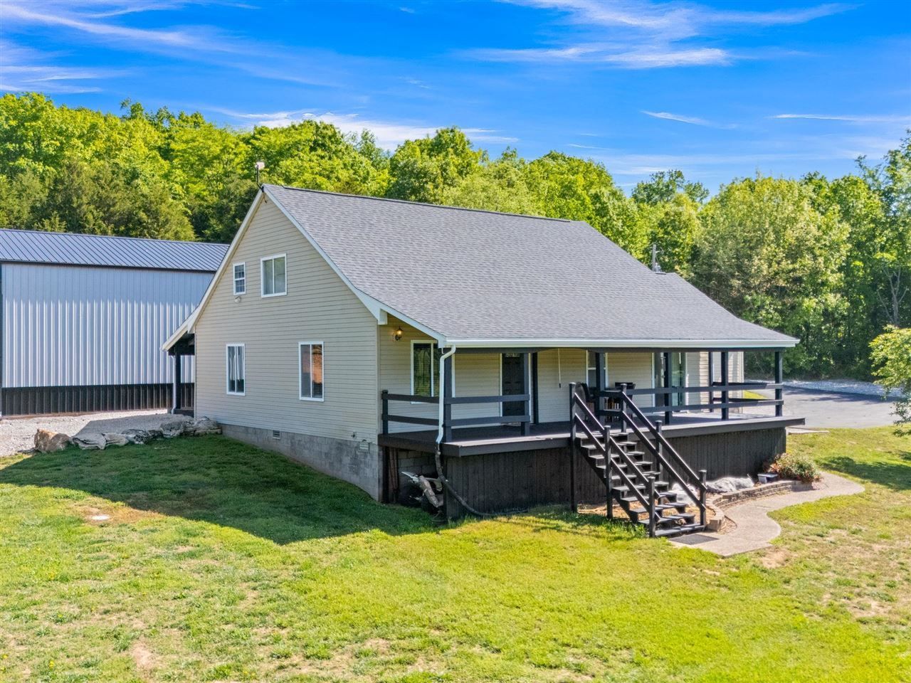 Private country setting with beautiful views off of your covered porches. Features five bedrooms, with two full baths. Master bedroom is on the main floor. Has a brand new roof, new HVAC unit, and new flooring on the main floor. The property also sits on a 2 acre lot. It also includes an attached garage and detached 30 x 50 shop that is 16ft tall to allow for a lift, and plumbing for a potential bathroom!
