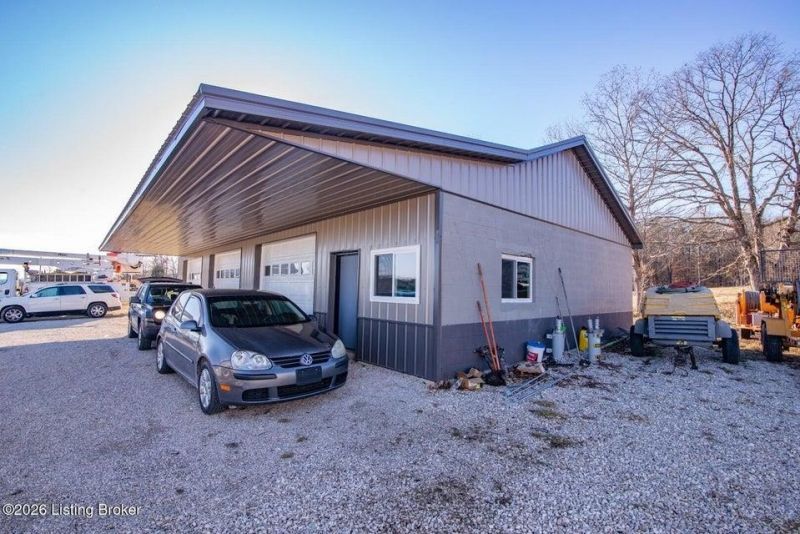 Close to WAX MARINA near Nolin Lake. 3 lots totaling 6.8 acres. Huge 60 x 30 concrete block garage/shop with metal roof. Featuring 3 overhead bay doors, plus overhang for additional covered parking. Utilities available near property. Easy access to road. Lots of opportunities!